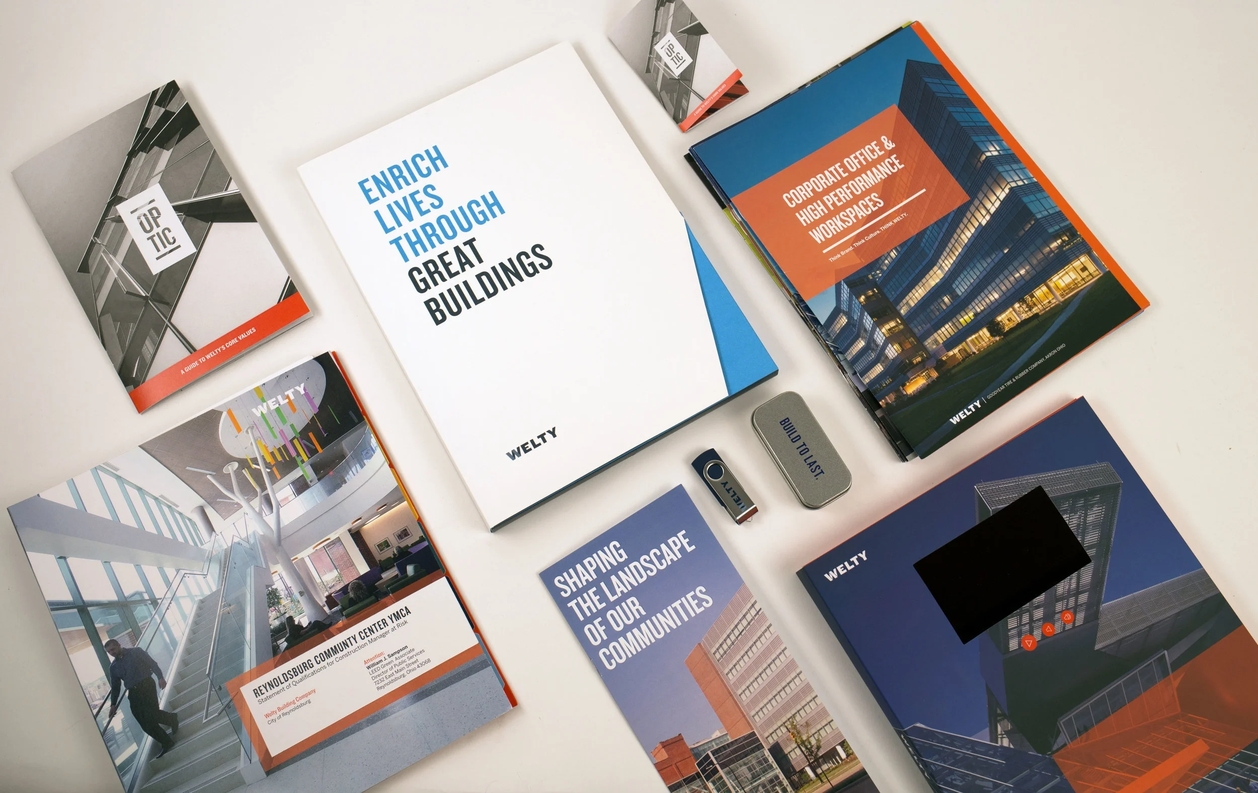 While working with TWIST-Creative in Cleveland, one of the first clients I was able to work with was Welty Building Company on a number of projects including their office core values handout, proposal system, and sales collateral.
